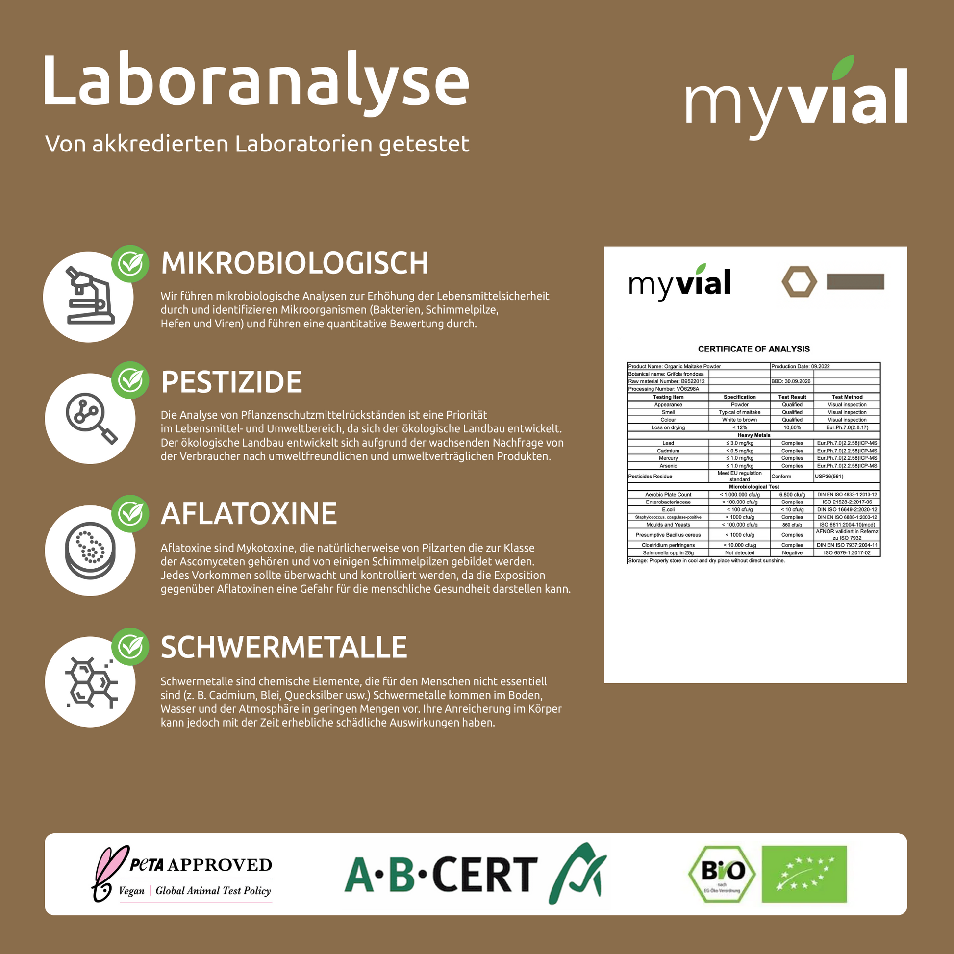 Um eine hohe Qualität zu gewährleisten, wird jeder unserer Rohstoffe von einem deutschen Labor geprüft.
